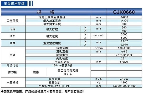 公司生產(chǎn)的CJK系列數(shù)控機床具有精密高、規(guī)格齊、結構合理、通用性強、造型美觀等優(yōu)點。采用高精度軸承,導軌使用超音頻淬火,經(jīng)久耐用。車床采用彈簧快速夾緊,電機直接帶動主軸皮帶輪傳動,并配有縱橫定位裝置控制行程,能完成內外圓車削、端面車削、切斷、割槽等,是儀表儀器、電器、汽車零配件、軸承及小五金行業(yè)零件加工的理想設備。
